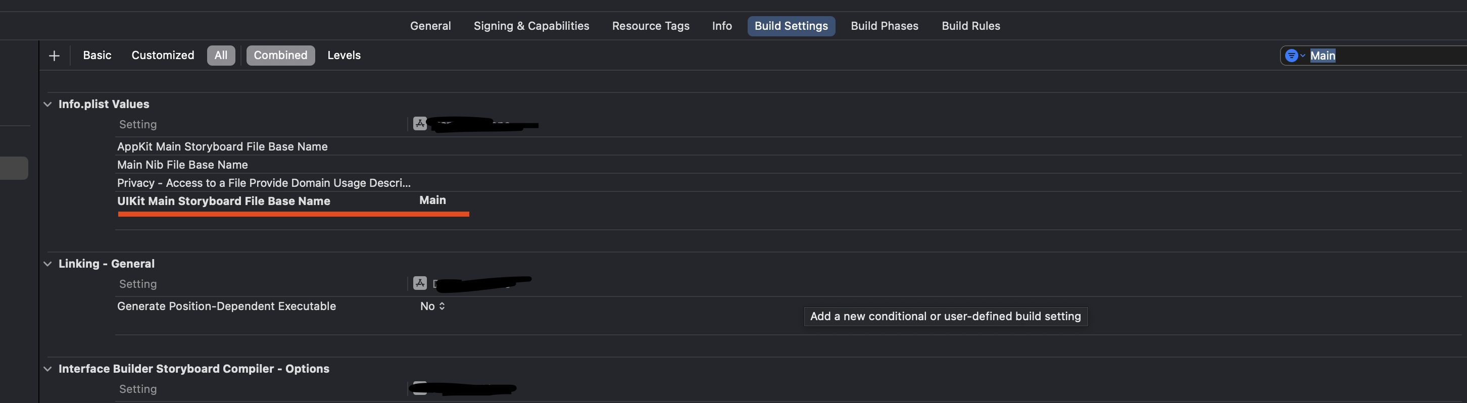 info.plist 에서 Storyboard Name 프로퍼티 삭제